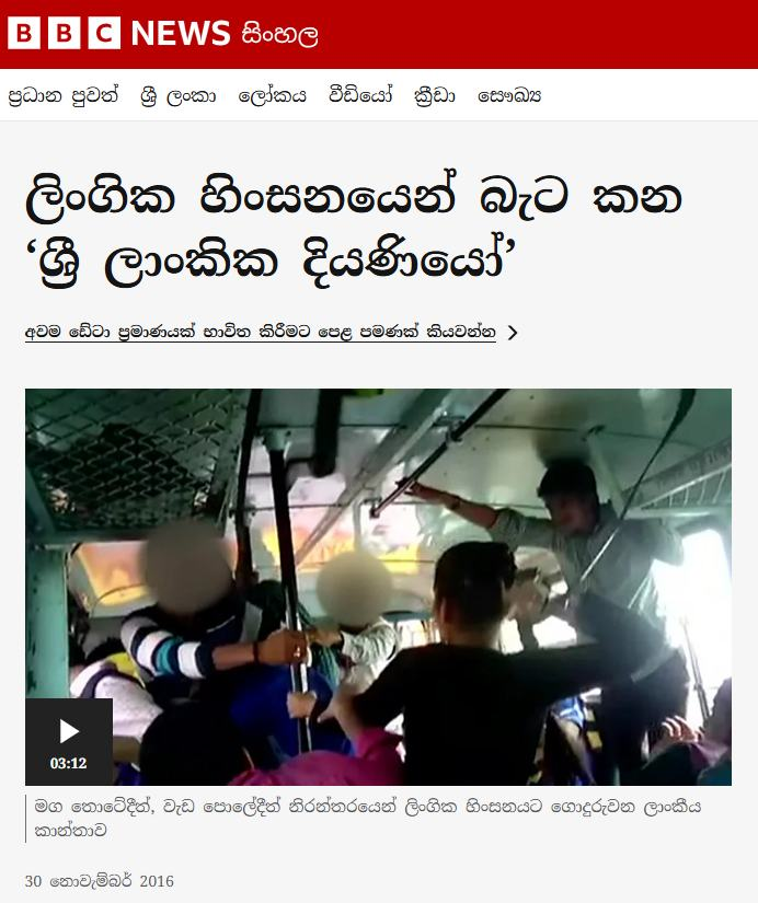 ඉහත ඡේද කිහිපය උපුටා ගත්තේ ප්‍රවාහනයේදී, මග තොටේදී, වැඩ පොලේදී ලිංගික අසහනකාරයින් ගෙන් ලංකාවේ කාන්තාව මුහුණ දෙන ලිංගික අතවර ගැන බීබීසී සිංහල සේවයට මම 2016 දී ලියපු ලිපියකින්.