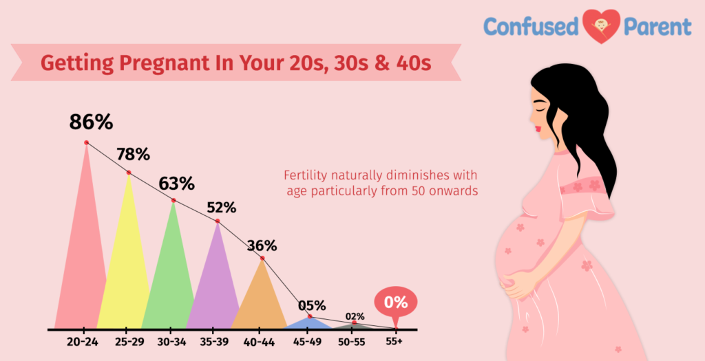 අවුරුදු 40න් පසුවද ස්වභාවිකව හෝ වෛද්ය උපදෙස් මගින් කාන්තාවකට ගැබ් ගැනීමේ හැකියාව ඇත. නමුත් ගැබ් ගැනීමේ හැකියාව වයස 35 ඉක්මවා ඇති විට ක්රමයෙන් අඩුවී යයි. වයස 35න් පසුව ඩිම්බ කෝෂවල ඩිම්බ සංඛ්යාව සහ ඒවායේ ගුණාත්මකභාවය අඩුවීම මෙයට හේතුවයි. මෙය පිළිසිඳ ගැනීමට අපහසුතා ඇති කළ හැකිය. එහෙත් තම සෞඛ්ය නිසි ලෙස පවත්වාගත හැකිනම් වයස 40 පසු වූ කාන්තාවකට වුවද දරුවකු බිහිකිරීමට හැකියාව තිබේ.
