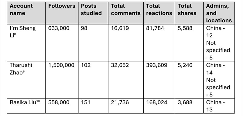 Engineered authenticity: Chinese influence operations on Facebook in Sri Lanka අධ්යන වාර්තාවට අනුව 2025 ජනවාරි සිට ඔක්තෝබර් කාලය අතර ෆේස්බුක් පෝස්ටු 3667ක් අධ්යනයට භාජනය වී ඇති අතර මෙම ගිණුම් අතරින් වැඩිම අන්තර් ක්රියාකාරිත්වයක් – පළ කළ පෝස්ටු 113 සඳහා ප්රතිචාර 4,63540ක් සහ 11825ක් බෙදා ගැනීම් – දක්නට ලැබී ඇත්තේ Waruni JZ ගිණුමටය.