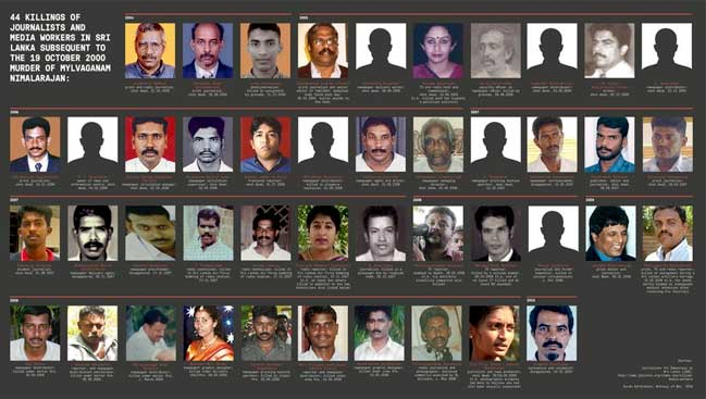 මාධ්යවේදීන් හා මාධ්ය සේවකයන්ගේ සංඛ්යාව හතළිස් හතර දෙනෙකු බව ශ්රිලංකාවේ ප්රජාතන්ත්රවාදය උදෙසා වූ ජනමාධ්යවේදීන්ගේ සංගමය සකස් කළ වාර්තාවක දැක්වේ. මෙම ඝාතනයන්ගේ වැරදිකරුවන්ට දඩුවම් ලබා දෙන බවට වූ කතා දේශපාලන වේදිකාවන්හි උත්කර්ෂයට නැංවුවද,මෙතෙක් මේ කිසිදු මරණයක් ගැන යුක්තිය ඉටුවී නොමැත. ඇත්තේ අපේක්ෂාවක් පමණි.