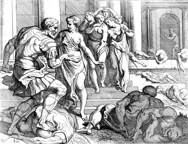ඔඩිසියස් වසර 20 කට පසු තම මාලිගාවට පැමිණි විට, එහි සිටි වහල් ස්ත්රීන් කිහිප දෙනෙකු ආක්රමණිකයන් අතින් දූෂණය වී ඇති බව දැනගනී. ඔහුගේ ප්රතිචාරය වූයේ ඔවුන් සියල්ලන්වම එල්ලා මැරීමයි.