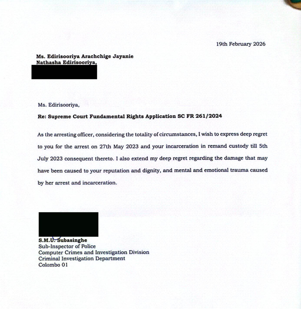 මෙකී කරුණු කාරණා අනුව, 2023 මැයි 28 වෙනිදා අලුයම 1.20ට කටුනායක ගුවන් තොටුපළේදී අත් අඩංගුවට ගෙන අනීතිකව පොලිස් අත් අඩංගුවට පත් කර බන්ධනාගාර ගත කිරීමට එරෙහිව ජයනි නටාෂා පොලිසියට හෙවත් ආණ්ඩුවට එරෙහිව ගොනු කළ පෙත්සම් විභාගයද අවසන්ව ඇති අතර මේ කෙරෙන්නේ ඒ පිළිබද කරුණු විමසා බැලීමකි.
