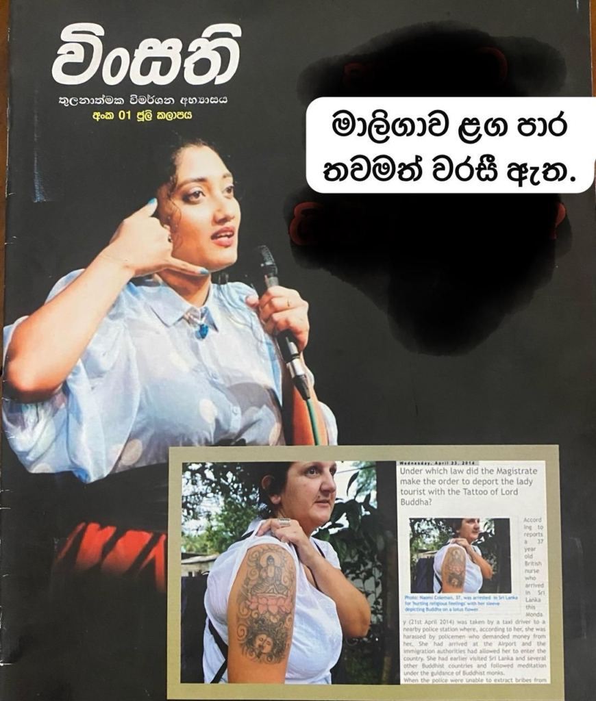 ජයනී නටාෂා මෙන්ම තවත් ගැහැනියක වූ නයෝමි මිචෙල් කෝල්මන් නම් බ්රිතාන්ය ජාතික කාන්තාවක් 2014 අප්රේල් මස 05 වෙනිදා කටුනායකදි අත් අඩංගුවට ගෙන දින 4ක් රදවා තබා ගැනීමෙන් පසුව ලංකාවෙන් පිටුවහල් කරනු ලැබීය. ඇය අත් අඩංගුවට ගත් හේතුව සිය දකුණු බාහුවේ උර හිස සමීපයෙහි බුදුන්ගේ යැයි සැක කළ හැකි රෑපකායක් පච්චයක් කොටාගෙන සිටීමය. වෘත්තියෙන් මානසික සෞඛ්ය විෂය පිළිබද හෙදියක වූ මිචෙල් තමන්ට සිදු කළ අපහාසය සම්බන්ධව සාධාරණයක් ඉල්ලා පවරණ ලද නඩුව අවසානයේ ‘‘අනීතිකව අපකීර්තිමත් සහ භයානක ආකාරයට“ එකී විදේශික කාන්තාවට සලකා ඇති බවට තීන්දු කළ ශ්රේෂ්ඨාධිකරණය, පෙත්සම්කාරියට රුපියල් 800,000ක හෙවත් බ්රිතාන්ය පවුම් 4000ක වන්දියක් ගෙවන ලෙස වගඋත්තරකරුවන්ට නියම කළේය.