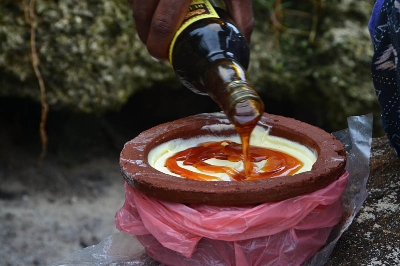 ඒ වගේම තමයි කිතුල් මල් කපන එක ආවට ගියාට කරන්නන් වාලේ කරන්න බෑ. හැම ගහකින්ම පැණි හදන්නත් බෑ. හැම ගහකම පැණි එකම රහත් නෙවෙයි. අලුත්ම ගහක මලකින් ගන්න පැණි වල යාන්තමට ලුණු රසක් තියෙනවා. කිතුල් මල කපන්න කලින් බෙහෙත් සාත්තුවක් කරනවා. ඒකට විශේෂ වුණු ගස් වර්ගවල පොතු, කොළ, වියන් දුඹුළු වගේ තවත් දේවල් අරන් හදන බෙහෙතක් මේක. ඒක ගාලා අව්වේ වේලලා ආපහු ඔතලා තියලා පස්සෙ තමයි කපන්න පටන් ගන්නෙ. කපන්න පටන් ගත්තට පස්සෙ කවදා හරි තෙල්දිය කඳුළ හිඳෙන දවසක් වෙනකල්ම මල කපන්න ඕන. ඒක පටන් ගත්තට පස්සෙ දේවකාරියක් වගේ තමයි. මල නොකපා දවස් දෙක තුනේ වට වන්දනා යන්න බෑ. එහෙම ගියොත් මල තරහා වෙනවා. තෙල්දිය නැතිවෙලා යනවා. ඉඳහිටක එක වරුවක් මගහැරුණත් දවස් ගණන් මල නොකපා ඉන්න බෑ. හකුරු පැණි හදන ගෙවල්වල පවුල් පිටින් ගමන් බිමන් යනවා හරි අඩුයි. තෙලිජ්ජ කියන්නෙ උණු නොකර තියාගන්න පුළුවන් දෙයක් නෙවෙයි. මල කපලා තෙල්දිය ගෙනාවට පස්සෙ ඒක ඒ දවසෙම උණු කරන්න ඕන. නැත්නම් ඒක රා වෙන්න පටන් ගන්නවා. රා වෙන්න පටන් ගත්ත එකක් උණු කළත්, ඒ පැණිවලත් ගෑස් එකක් වගේ ඒ සැර තියෙනවා.