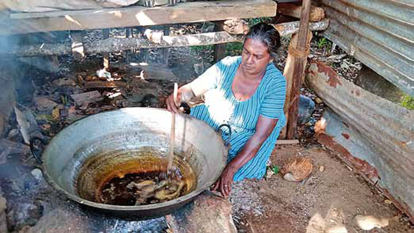 ඉස්සර නම් කැලේ ගිහින් සුමාන ගණන් නැවතිලා මල් කපන මිනිස්සු හිටියා. දැන් එහෙම ගිහින් ඉන්න තහනම්. තමන්ගේ වත්තෙ තියෙන කිතුල් මල් තමයි කපන්න පුළුවන්. ඒ වගේ කිතුල් ගස් තියෙන්නේ බොහොම ස්වල්පයයි. මිනිස්සු කිතුල් පැණි හකුරු හොයන තරමට නිෂ්පාදනය සිද්ද වෙන්නේ නෑ. ඒ නිසා තමයි සීනි කලවම් පැණි හකුරුවලට ඉඩක් ලැබෙන්නේ. කිතුල් කර්මාන්තයට බලපාන අනිත් කාරණය තමයි තෙල් දිය තාච්චියක් උණු කරන්න දර සැලකිය යුතු ප්රමාණයක් වුවමනා වෙනවා. කිතුල් මලක් ඉවර වෙනකල් එන තෙල් දිය උණු කරන්න කොයිතරම් දර ප්රමාණයක් වුවමනා වෙයි කියලා හිතනවද? ඉස්සර කැලේ වැටුණු දර කොට ගේන්න තහනමක් තිබුණේ නෑ. දැන් එහෙම හිතුණ හිතුණ වෙලාවට කැලේට යන්න බෑ. ඒක එක පැත්තකින් හොඳ වුණාට තවත් පැත්තකින් කිතුල් කර්මාන්තය වගේ කර්මාන්තවලට කරන හානියක්. මොකද කිතුල් පැණි උණුකරනවා වගේ වැඩක් ගෑස් එකකින් කරන්න බෑ.”