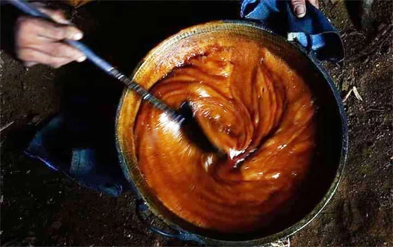 තවත් අපූරු කාරණාවක් තියෙනවා. පැණි උණුකරන්න ළිපට දාන්න ගන්න දර වර්ගය අනුව, පැණි හකුරුවල පාට වෙනස් වෙනවා. කැප්පෙටියා දර දාලා තෙලිදිය උණු කළාම බොහෝම ළා පැහැයකට පැණි හැදෙන්නේ. දං ගහේ දර දාලා පැණි උණු කළොත් පැණි ටික අර දං ගෙඩිය වගේම තද පාටකට හැරෙනවා.” කිතුල් පැණි, හකුරුවල වර්ණය තීරණය වන අපූරු නිර්නායකයක් පිළිබඳව ඔහු පැහැදිලි කර දුන්නේය.