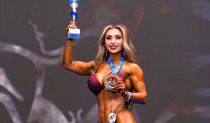 ඇගේ දීප්තිමත්, දුඹුරු පැහැති හමෙන් ප්‍රදර්ශනය වන්නේ මනාව විදහා පාන මාංසපේශී රේඛාවන්. මෙය පැය ගණනාවක් ජිම්නේසියමේ ලැබූ බර ඉසිලීමේ පුහුණුවක ප්‍රතිඵල.