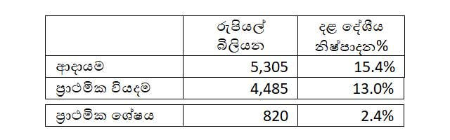 රජයේ ප්‍රාථමික වියදම දළ දේශීය නිෂ්පාදිතයෙන් 13%කට සීමා කිරීමට සිදු වීම