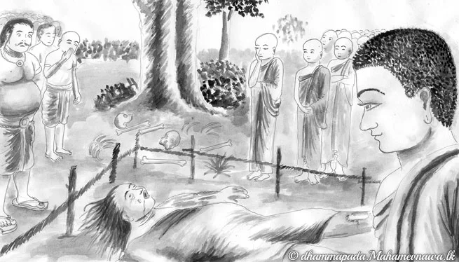 නමුත් අකාලයේ මිය ගිය සිරිමාගේ දේහය සම්බන්ධ ධම්මපදට්ඨ කථාවේ එන සුවිශේෂී සිදුවීම බෞද්ධ සාහිත්‍යයේ එන අතිශය සංවේදී සහ අර්ථවත් අවස්ථාවකි. සිරිමා අකාලයේ මියගිය පසු බිම්බිසාර රජු ඒ බව බුදුන් වහන්සේට දැනුම් දුන්නේය. එවිට බුදුන් වහන්සේ වදාළේ ඇයගේ සිරුර වහාම ආදාහනය නොකර, ආමක සුසානයට හෙවත් මළ සිරුරු දමන ස්ථානයට දමා සතුන්ගෙන් ආරක්ෂා වීමට වැටක් ගසා දින හතරක් තබන ලෙසයි. රාජ නියෝගය පරිදි එය සිදු වූ සිව් වන දිනයේදී සිරුර බෙහෙවින් ඉදිමී, නිල් පැහැ වී, සිදුරු නවයකින් කුණු ලේ සහ සැරව ගලමින්, පණුවන් ගැසී තිබුණි. එවිට බුදුන් වහන්සේ රජු ලවා “සිරිමා දැක ගැනීමට කැමති අය අද පැමිණෙත්වා!” යනුවෙන් නගරය පුරා අණ බෙර යැවූහ. මෙම පණිවිඩය අසා දහස් ගණන් ජනයා රැස් වූහ. ඇය කෙරෙහි ඇලුම් කළ පිරිස් මෙන්ම බුදුන් වහන්සේගේ මෙම සුවිශේෂ කාරිය කුමක් දැයි දැන ගැනීමට රිසි වූ පිරිස ද ඒ අතර වූහ.